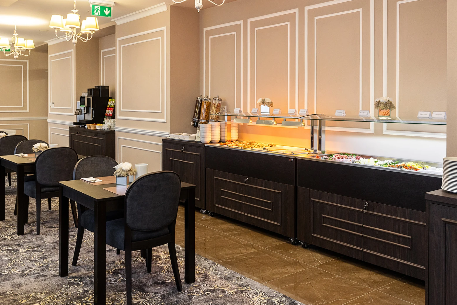 V hoteli sa nachádza Lobby bar, kde sa pre ubytovaných hostí podávajú raňajky formou bufetu. Obedy a večere sú zabezpečené v neďalekom hoteli Astória/Ozón.