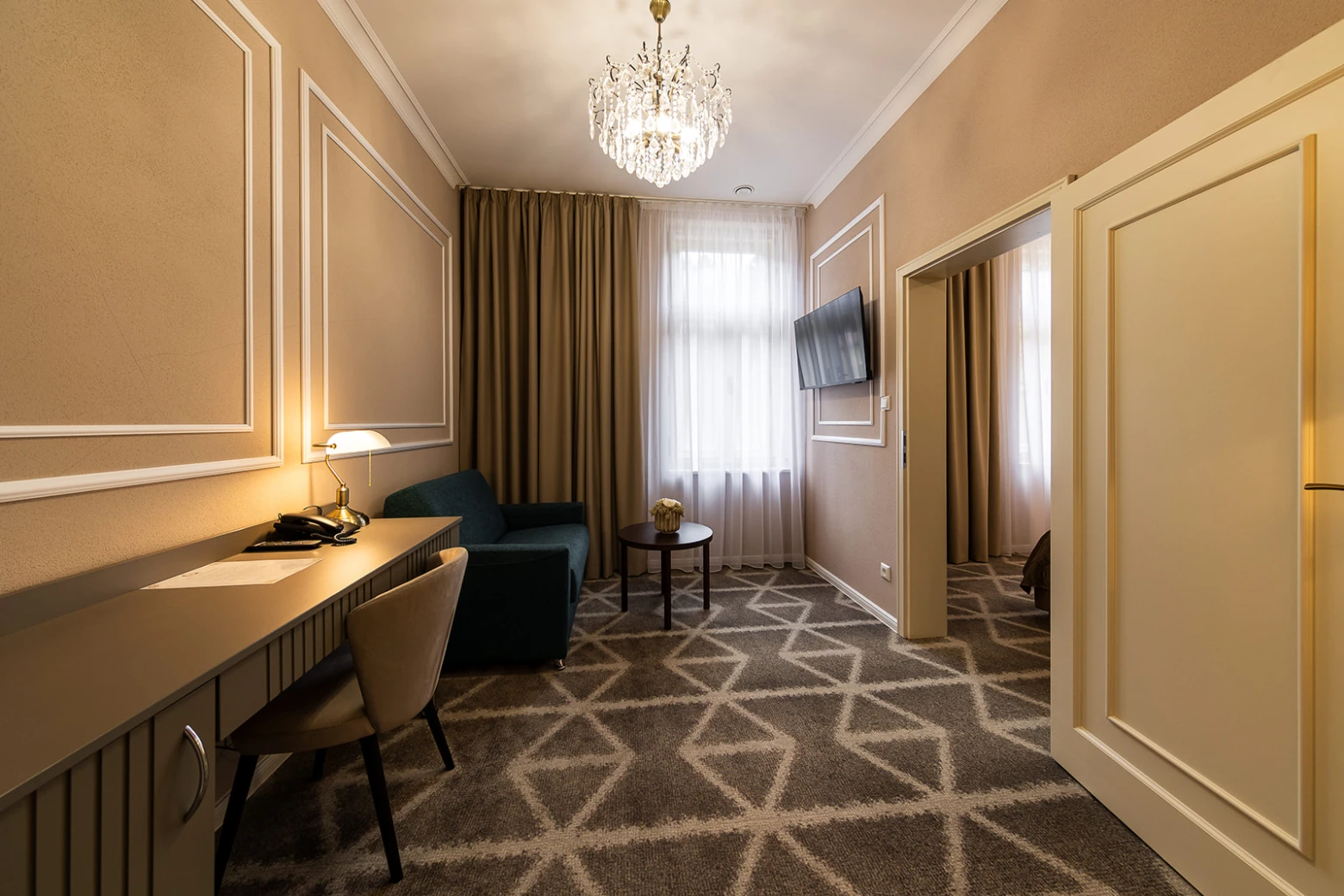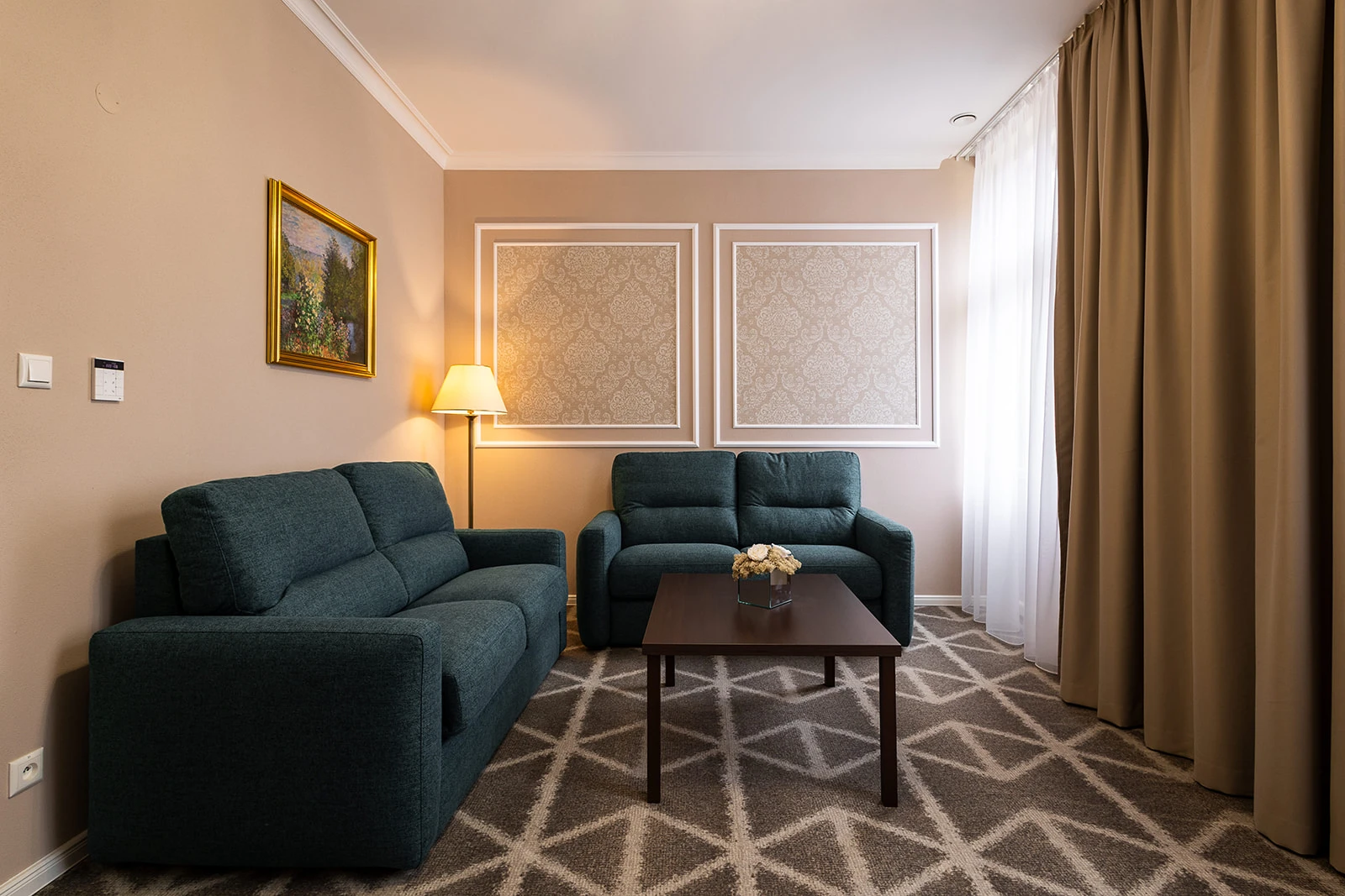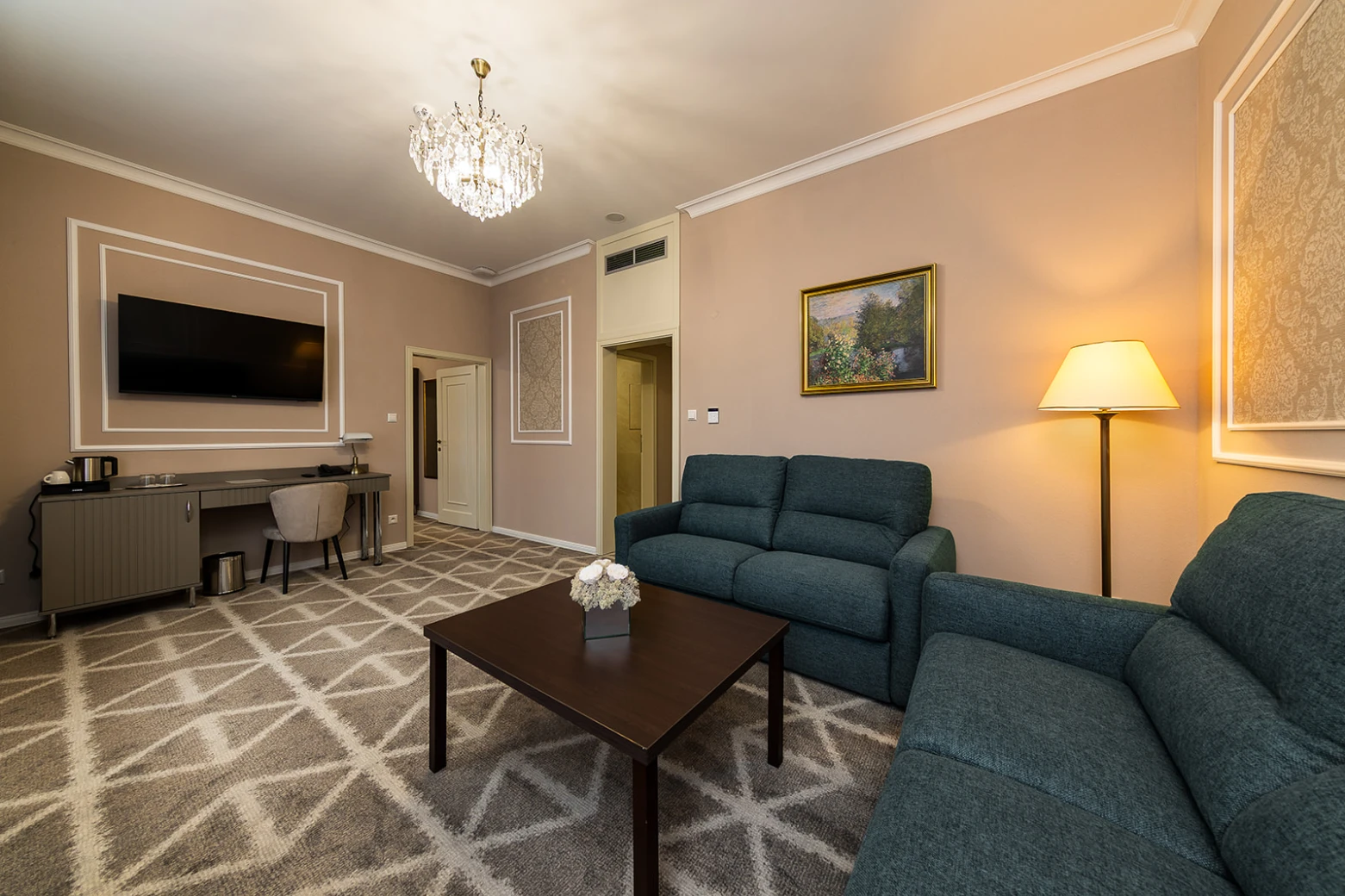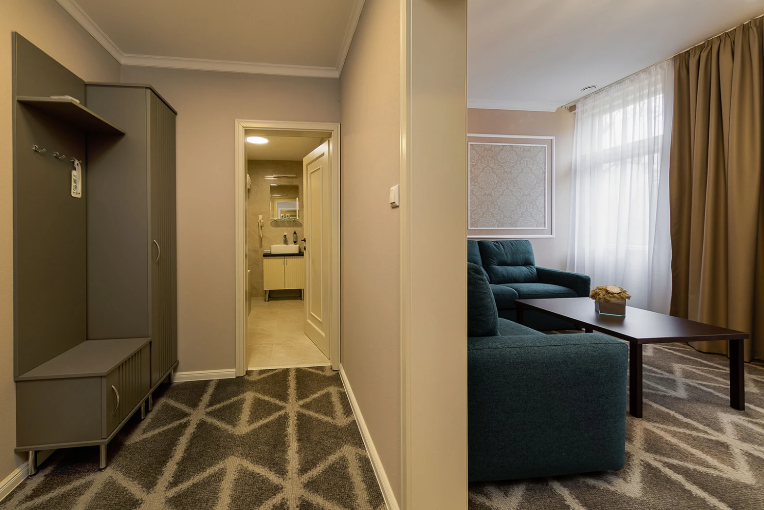 Menší apartmán, klimatizácia, obývacia a spálňová časť, rozkladacie kreslo, minibar, rýchlovarná kanvica, televízor, telefón, WC, sprcha, bezpečnostný trezor. Súčasťou vybavenia je župan, hotelové papučky. Na každé lôžko – 1 osuška, 1 uterák. Kúpeľňa: sušič na vlasy, kozmetické zrkadlo, osobná váha, hygienické vreckovky v krabičke, odličovací set, toaletné mydlo, telové mlieko, vlasový a telový šampón.