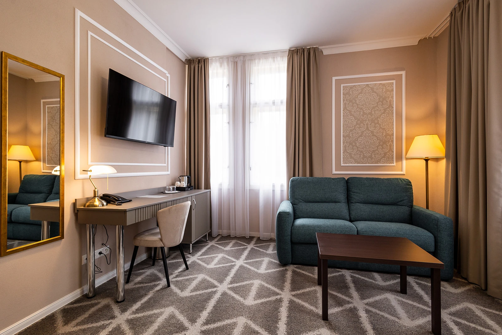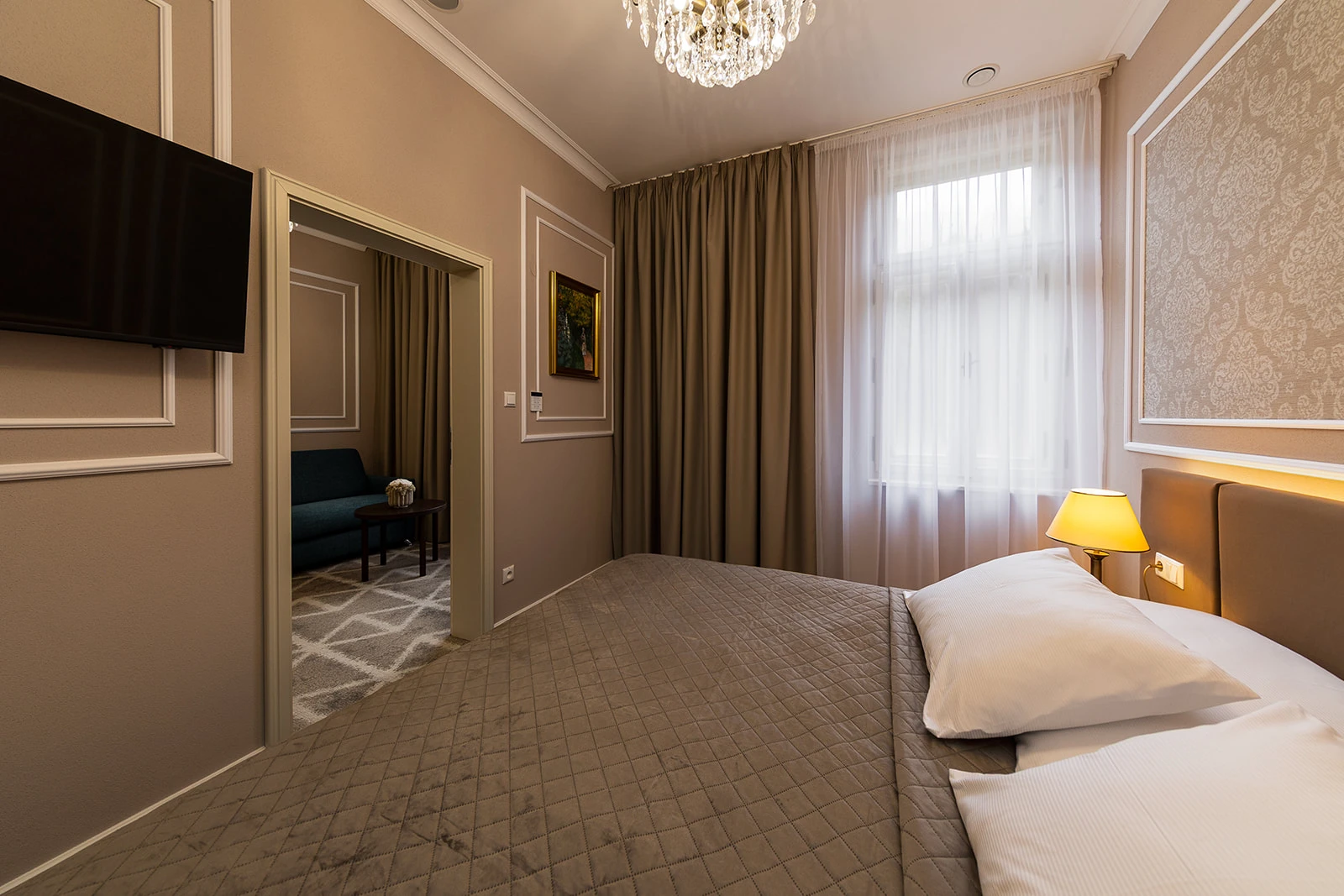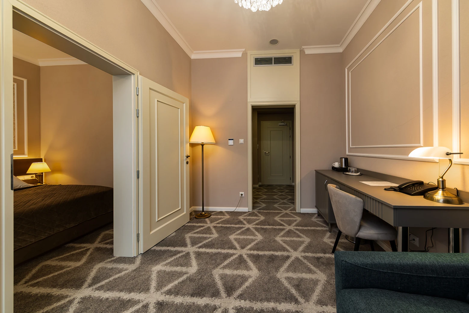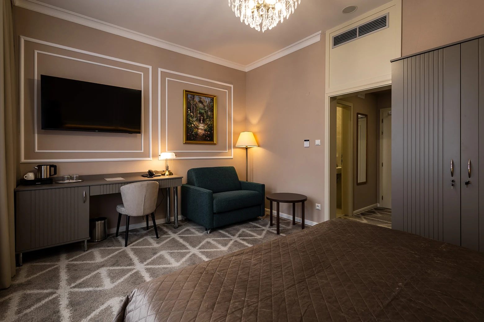 Menší apartmán, klimatizácia, obývacia a spálňová časť, rozkladacie kreslo, minibar, rýchlovarná kanvica, televízor, telefón, WC, sprcha, bezpečnostný trezor. Súčasťou vybavenia je župan, hotelové papučky. Na každé lôžko – 1 osuška, 1 uterák. Kúpeľňa: sušič na vlasy, kozmetické zrkadlo, osobná váha, hygienické vreckovky v krabičke, odličovací set, toaletné mydlo, telové mlieko, vlasový a telový šampón.