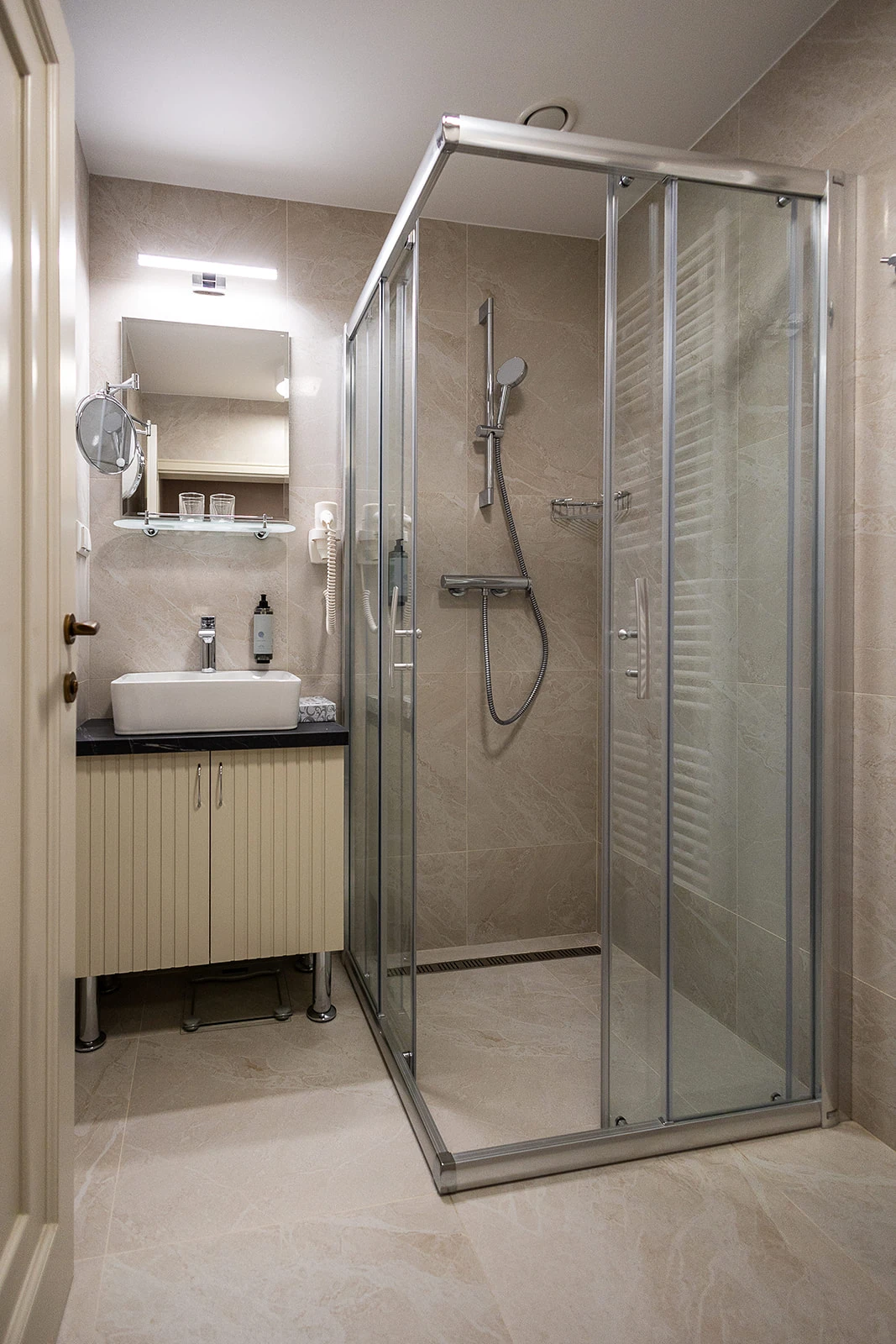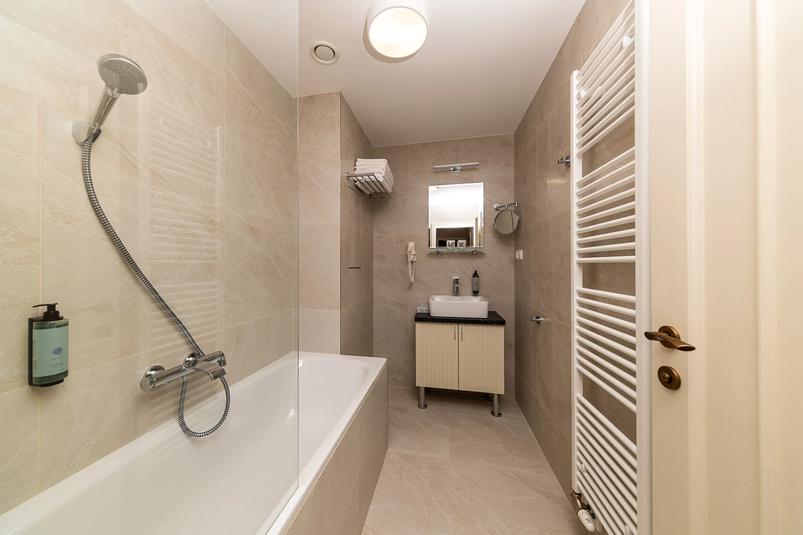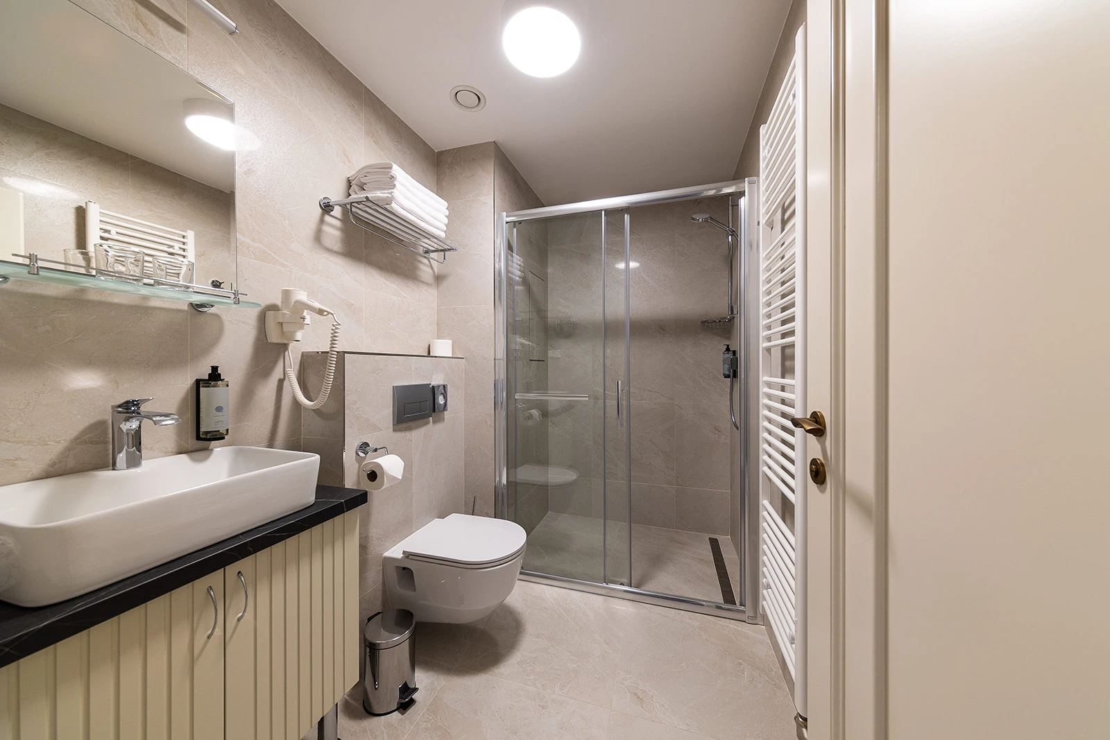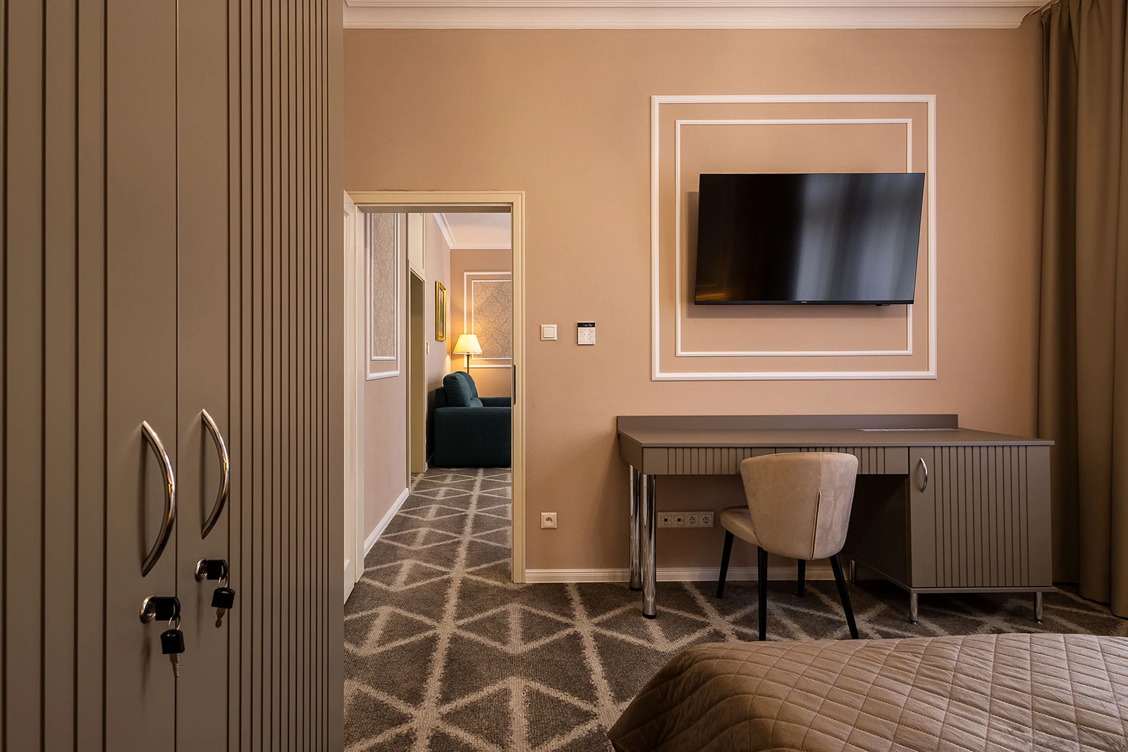 Menší apartmán, klimatizácia, obývacia a spálňová časť, rozkladacie kreslo, minibar, rýchlovarná kanvica, televízor, telefón, WC, sprcha, bezpečnostný trezor. Súčasťou vybavenia je župan, hotelové papučky. Na každé lôžko – 1 osuška, 1 uterák. Kúpeľňa: sušič na vlasy, kozmetické zrkadlo, osobná váha, hygienické vreckovky v krabičke, odličovací set, toaletné mydlo, telové mlieko, vlasový a telový šampón.