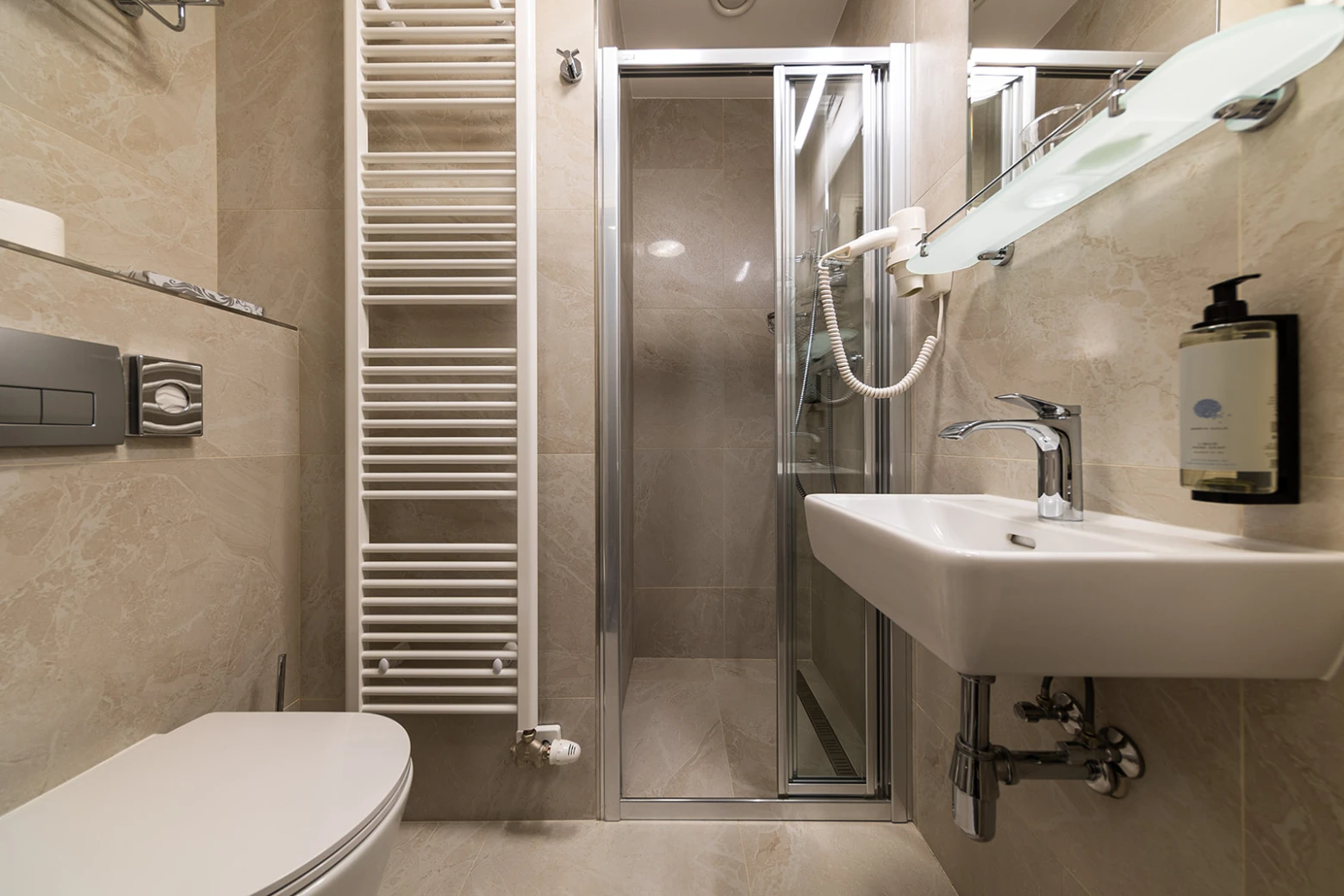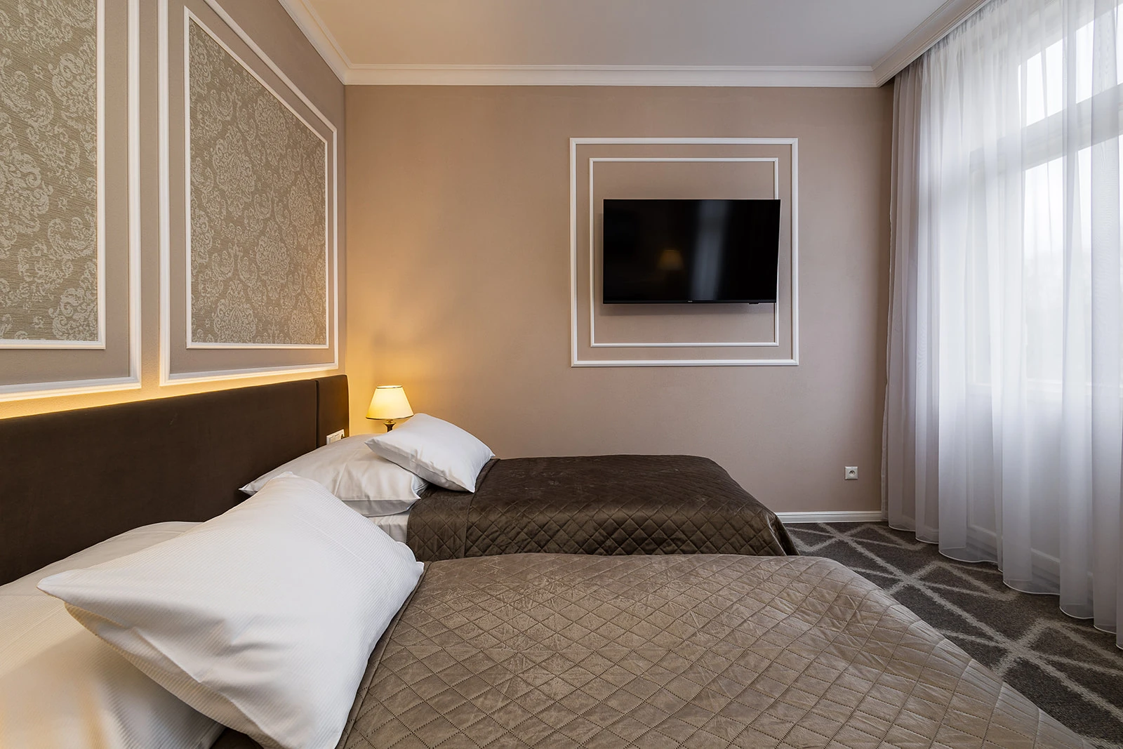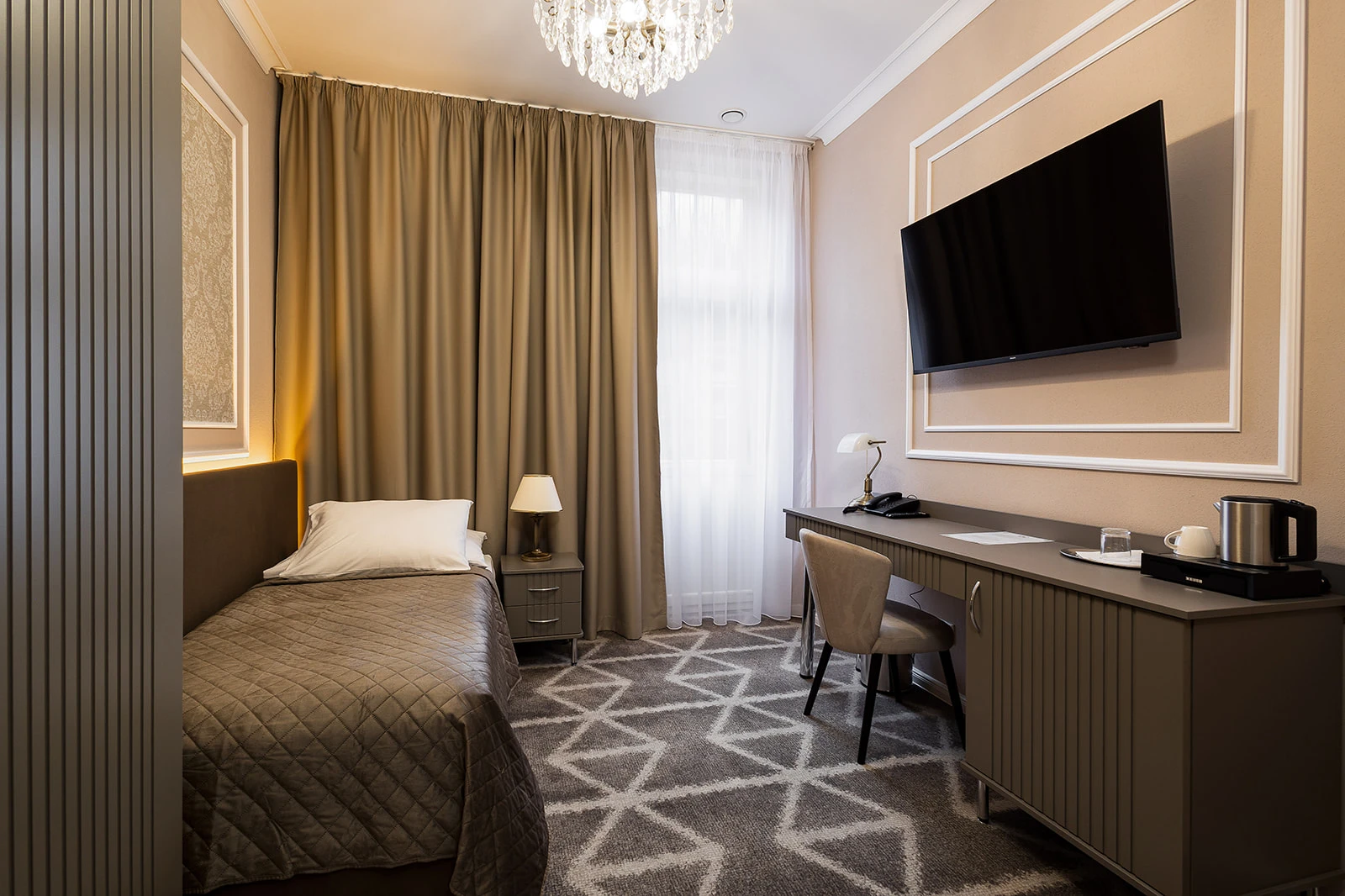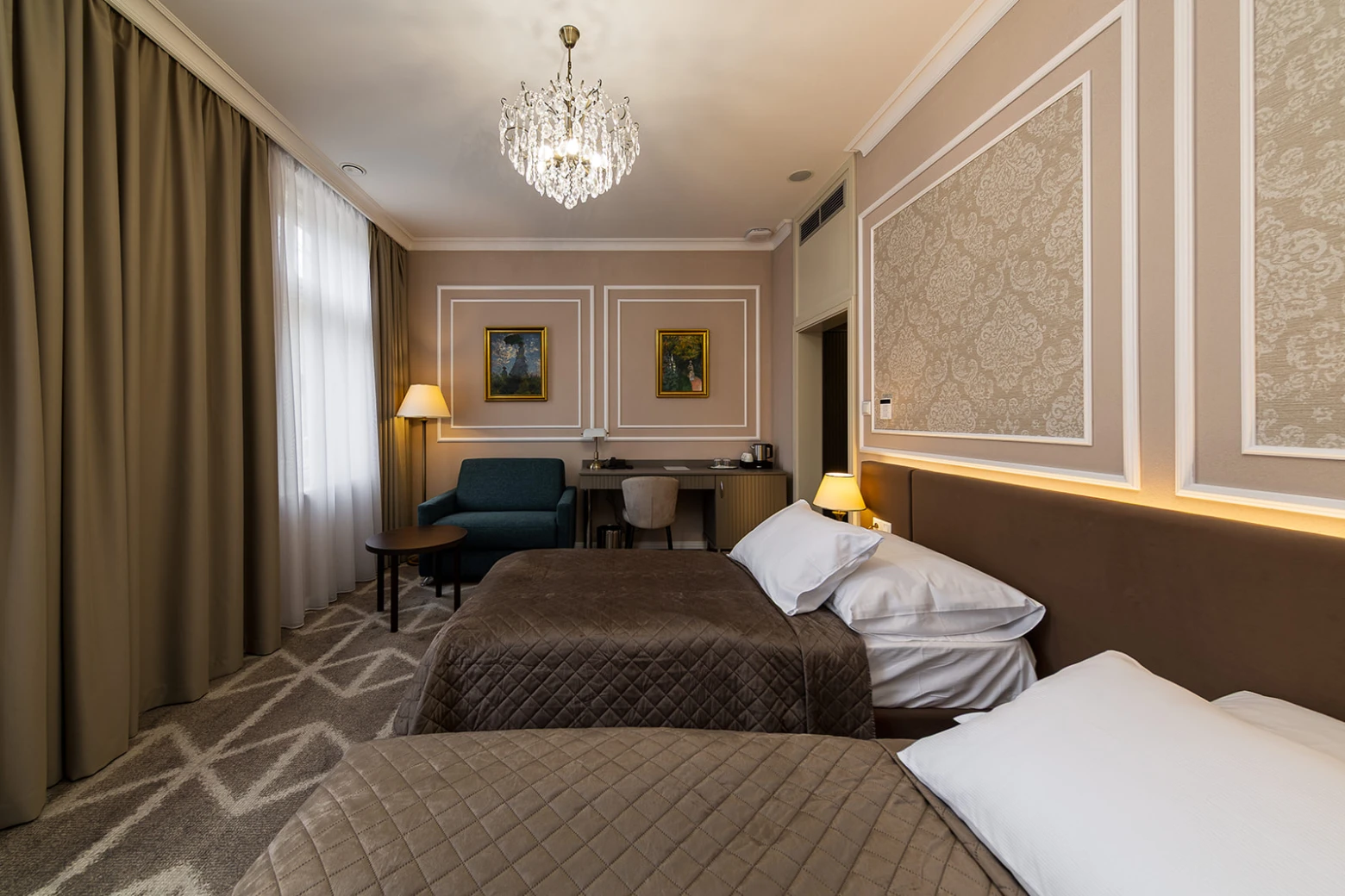 Klimatizácia, televízor, telefón, chladnička, WC, sprcha. Súčasťou vybavenia je rýchlovarná kanvica, bezpečnostný trezor na izbe, župan, hotelové papučky. Na každé lôžko - 1 osuška, 1 uterák. Kúpeľňa: sušič na vlasy, kozmetické zrkadlo, osobná váha, hygienické vreckovky v krabičke, odličovací set, toaletné mydlo, vlasový a telový šampón.