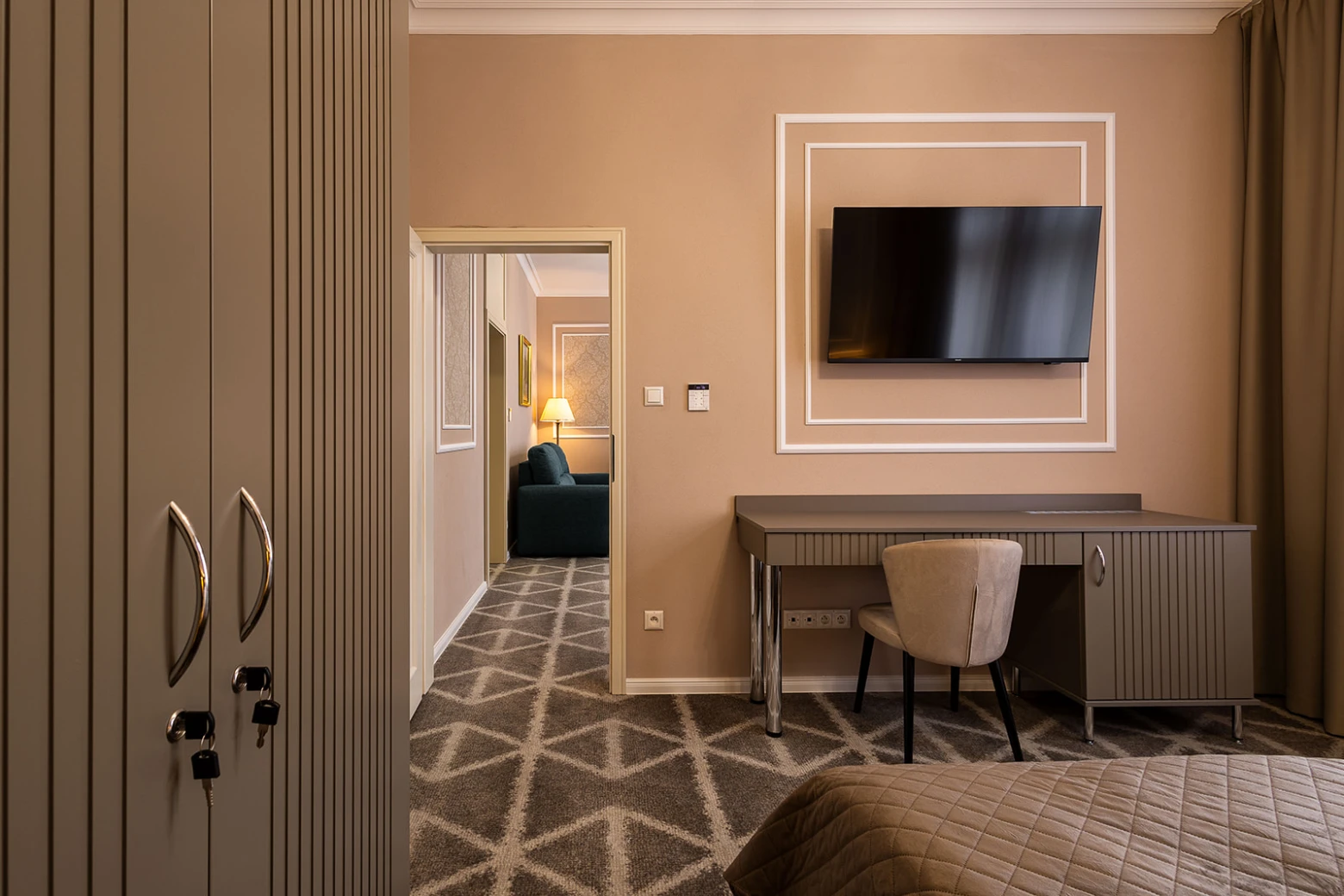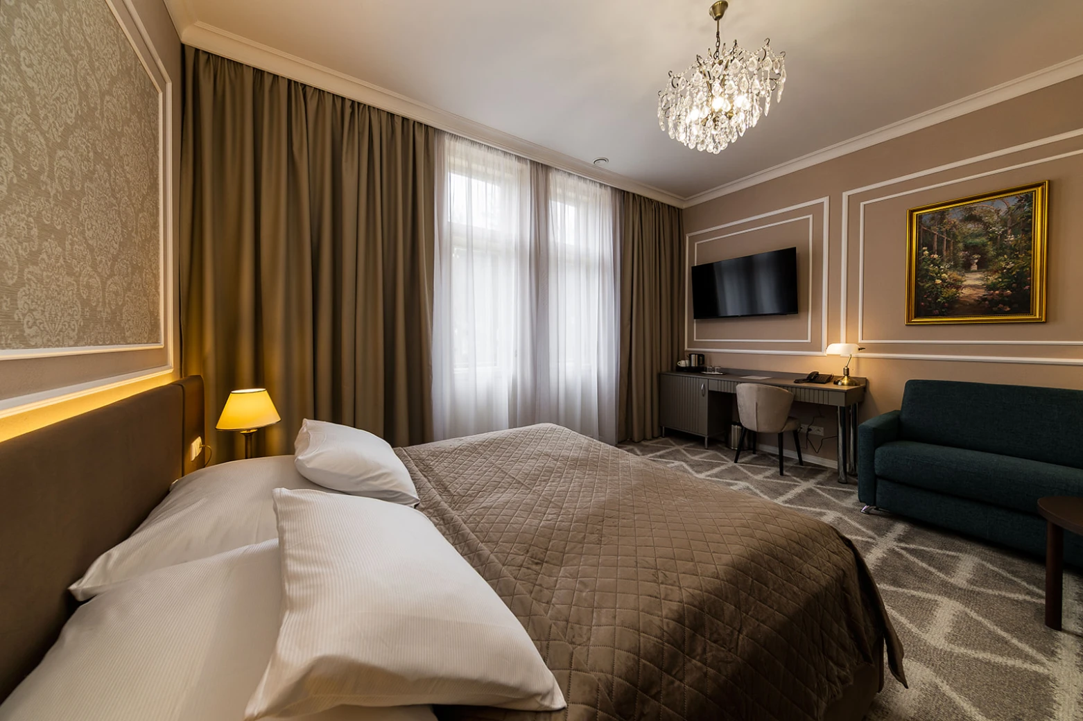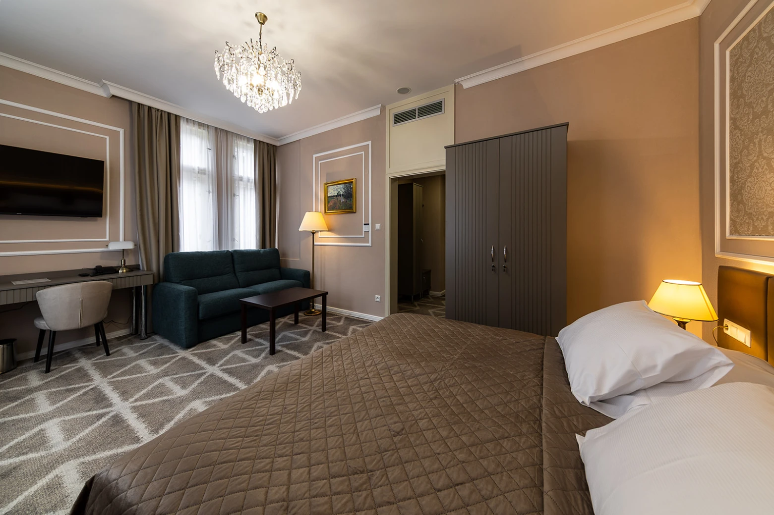 Väčší apartmán, balkón, klimatizácia, obývacia a spálňová časť, rozkladacia pohovka, minibar, rýchlovarná kanvica, televízor, telefón, WC, vaňa, bezpečnostný trezor. Súčasťou vybavenia je župan, hotelové papučky. Na každé lôžko - – 1 osuška, 1 uterák. Kúpeľňa: sušič na vlasy, kozmetické zrkadlo, osobná váha, hygienické vreckovky v krabičke, odličovací set, toaletné mydlo, telové mlieko, vlasový a telový šampón